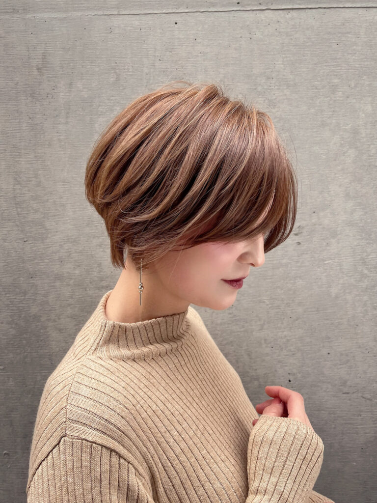 髪をキレイに見せながら、季節感も楽しめる大人ショート。