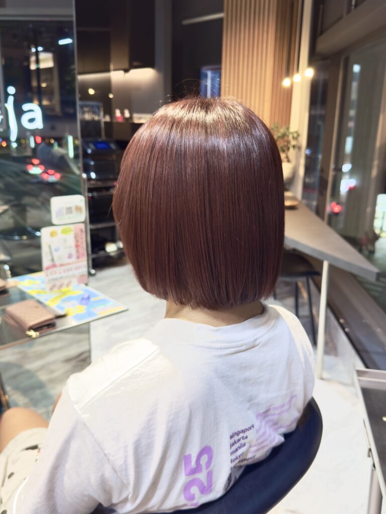 やわらかな暖色カラーを組み合わせたボブは、肌映りが明るく華やかな印象になります!