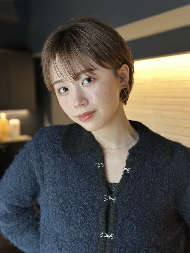 首元がすっきり見える丸みミニボブは、冬の定番人気スタイル。