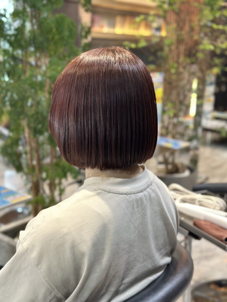 まとまり感が出るミニマルなストレートボブで、後ろ姿も美しく仕上がりました◎